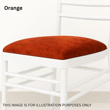 Original price was: £2.05.£1.80Current price is: £1.80. Inc. VATOrange Crushed Velvet Chiavari Chair Removable Pad Cover